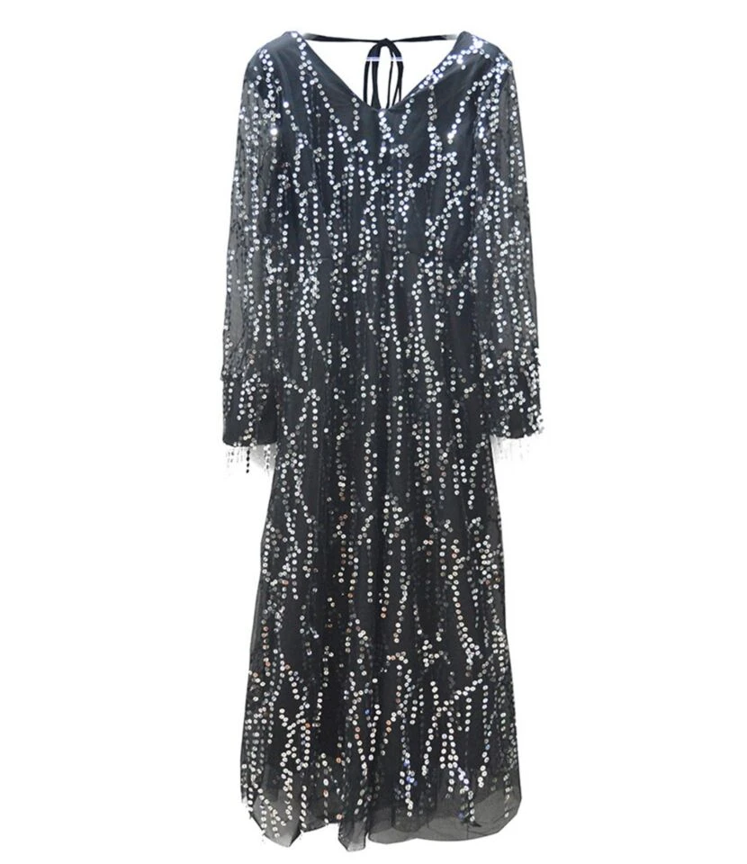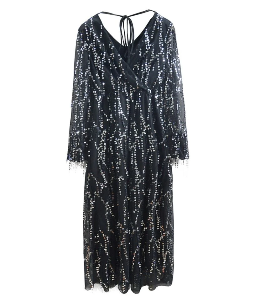 Be the first to review “V-neck Sequins Tassel Sheered Party Dress” Cancel reply