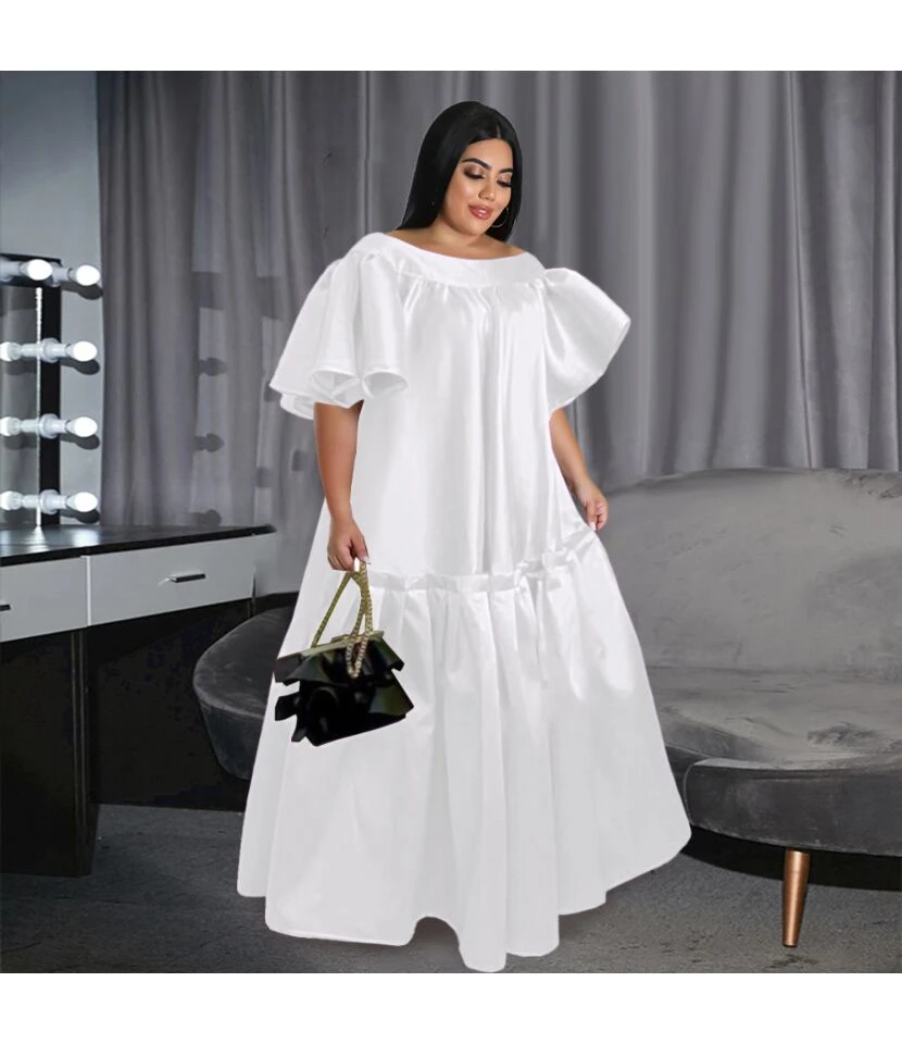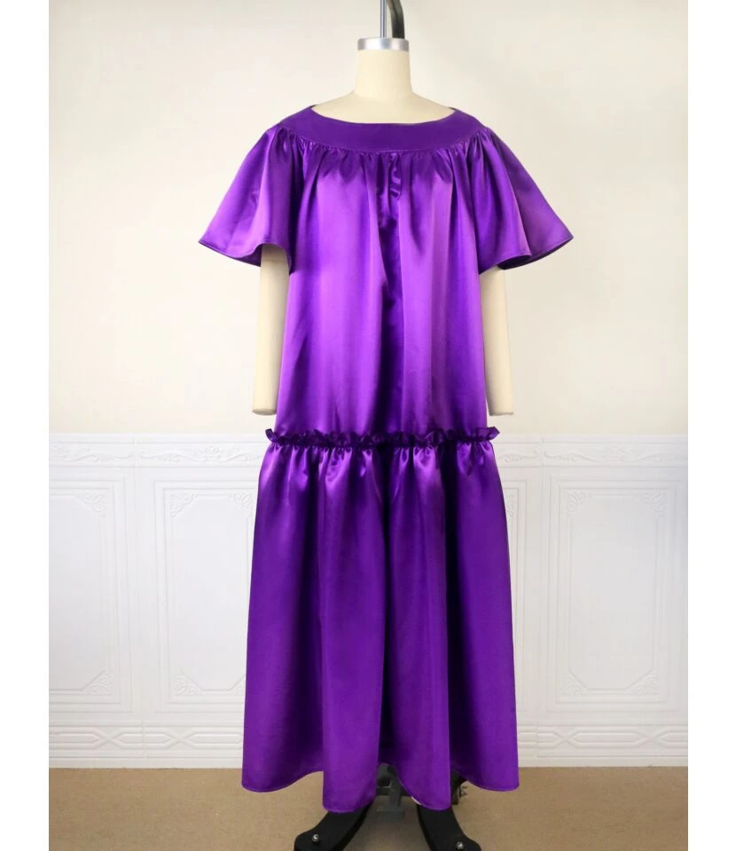 Wholesale Plus Size Clothing Loose Waist U-Neck Commuter Ruffle Sleeve Dress V5923050600025